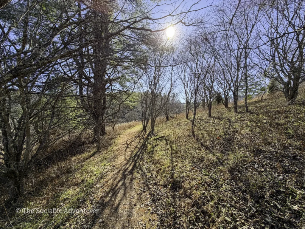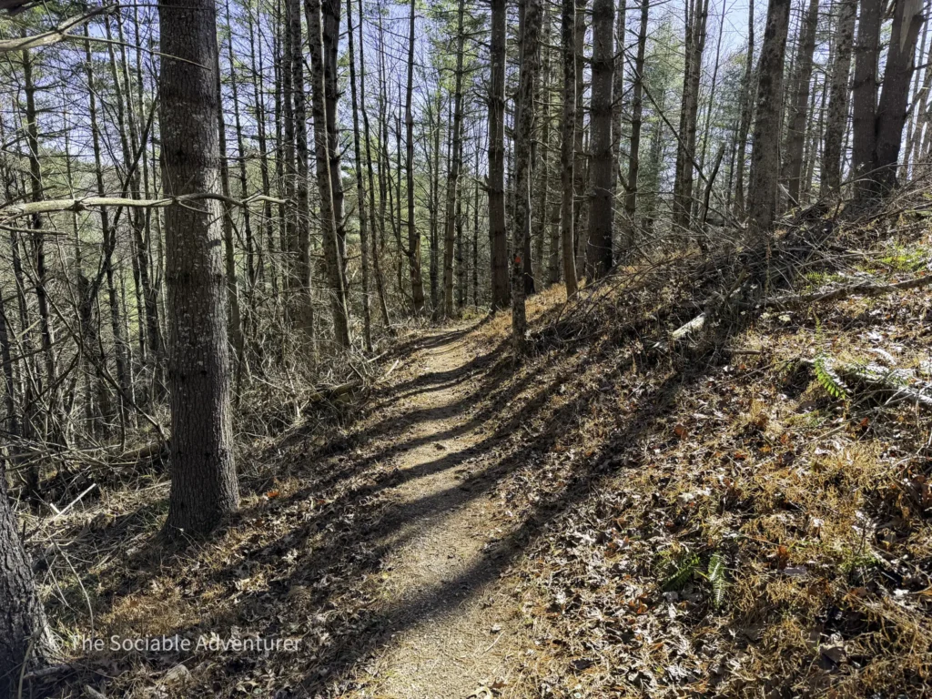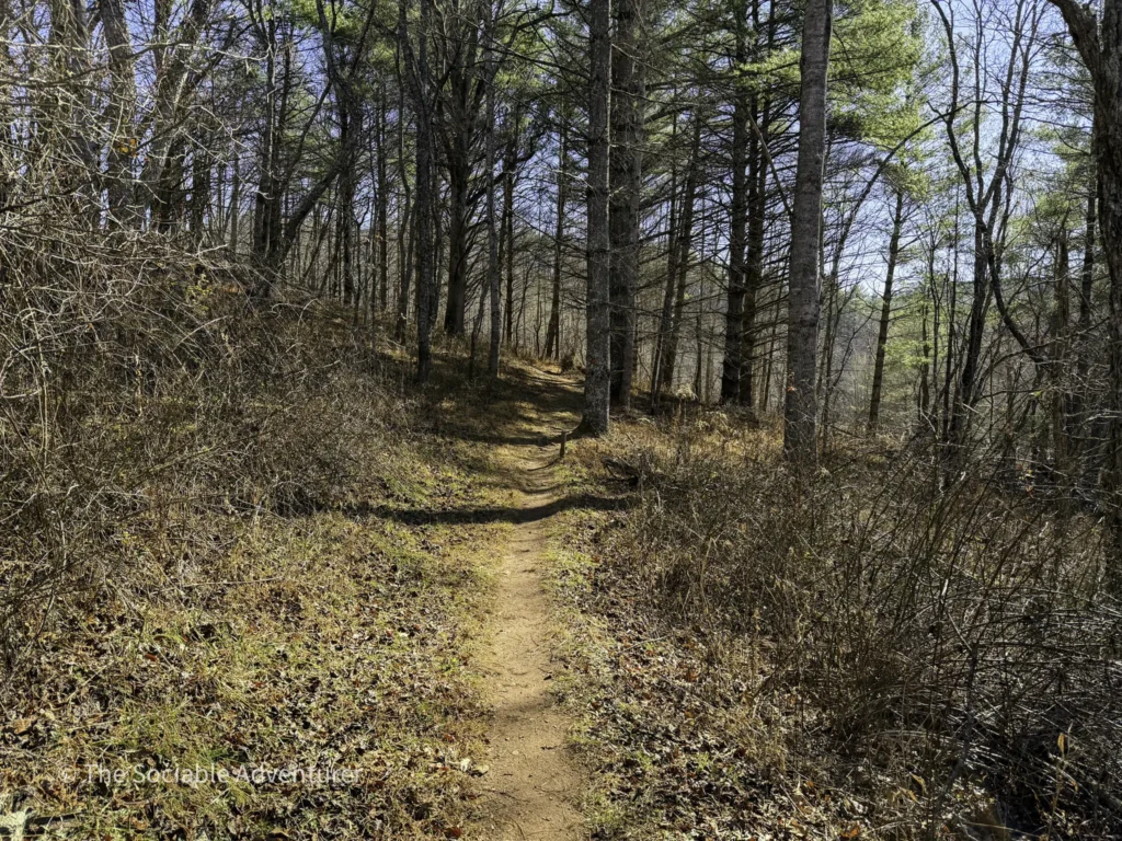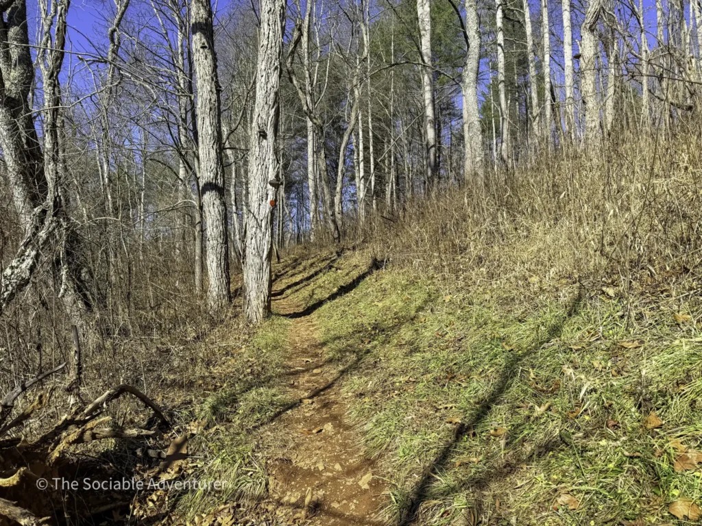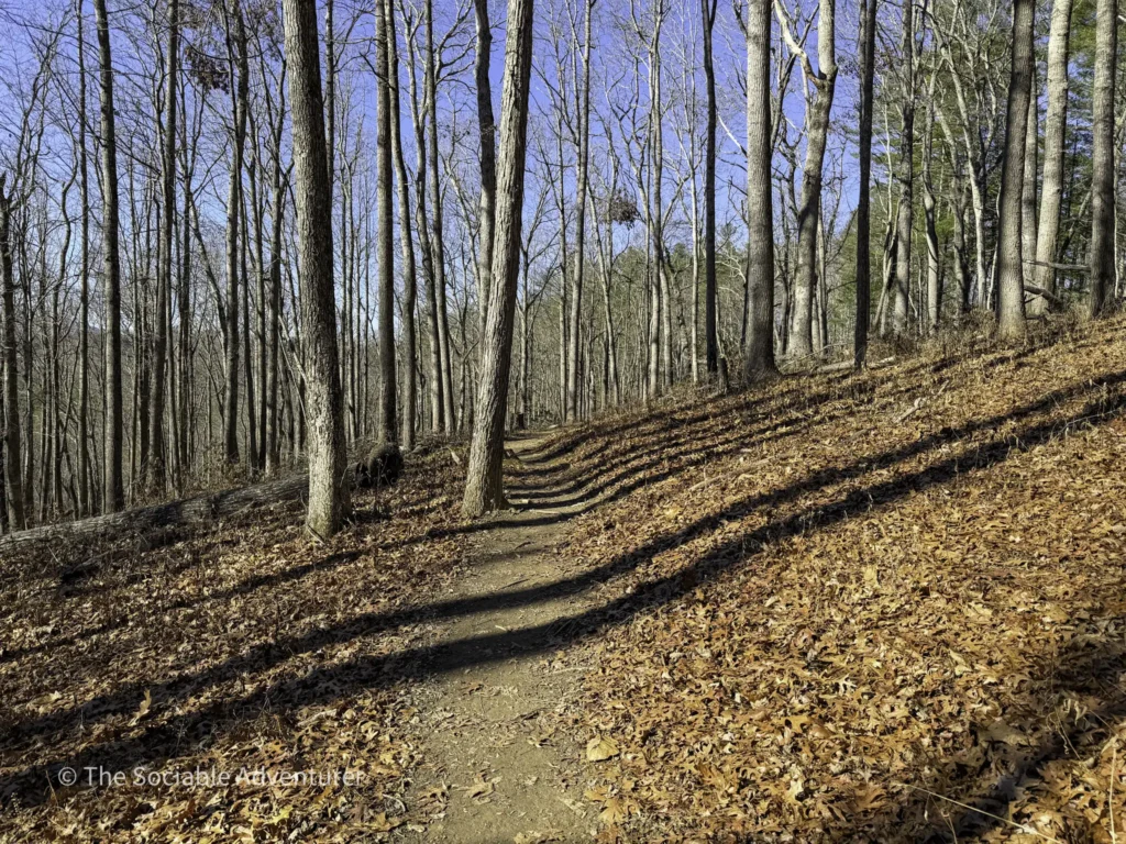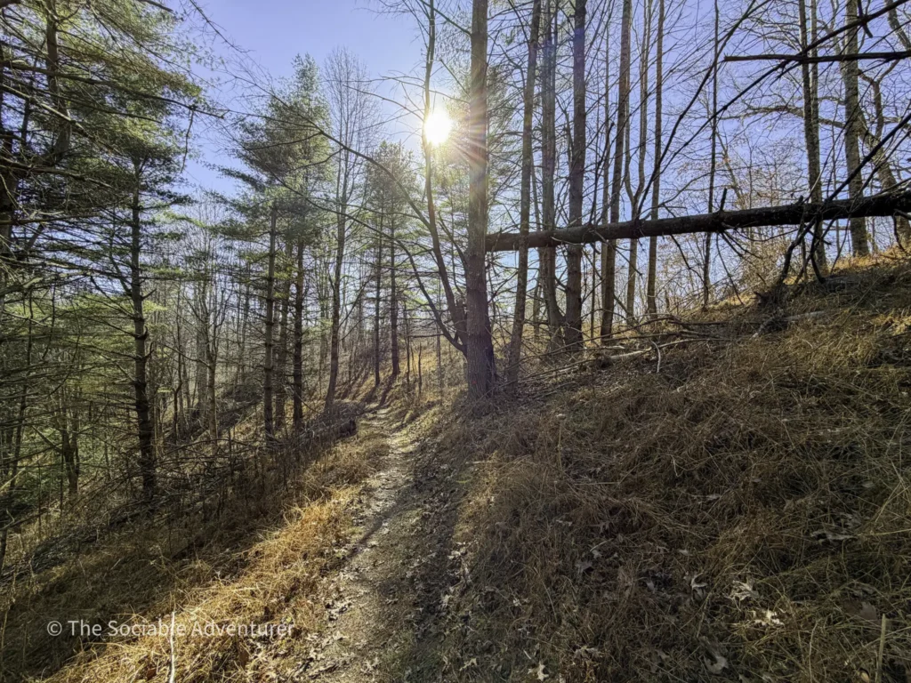 The Hickory Trail at the US 221 Access in New River State Park is a red-blazed loop trail about 1 to 1.2 miles long, rated easy to moderate. It starts near the visitor center and parking area, winding through a hardwood forest filled with oaks and hickories. Along the way, you’ll find open views, shelf fungi on trees, and a peaceful setting.