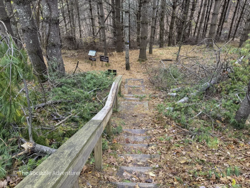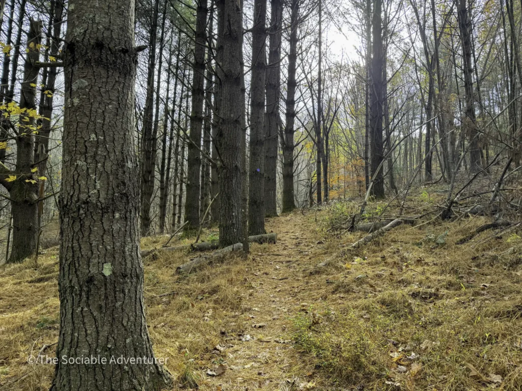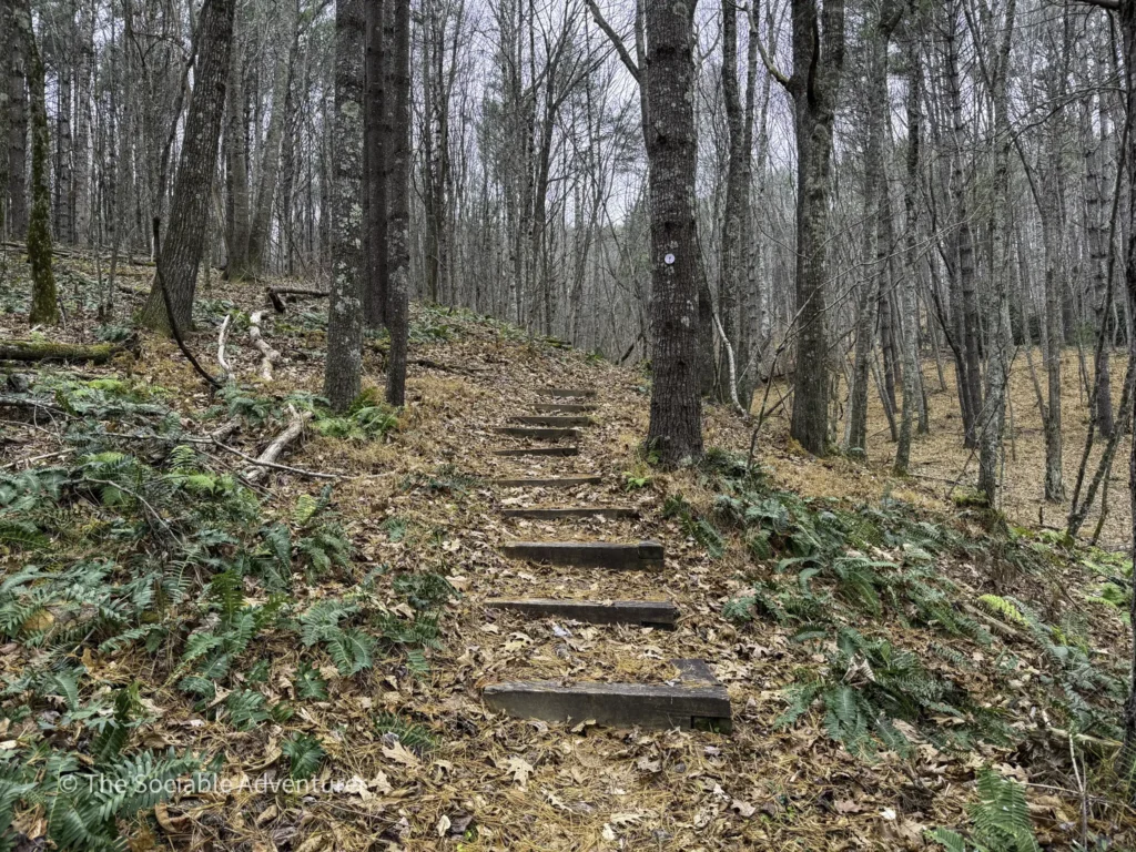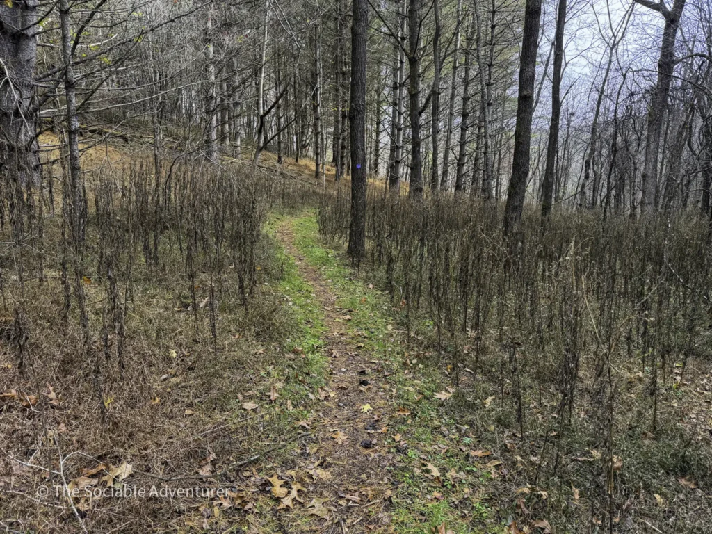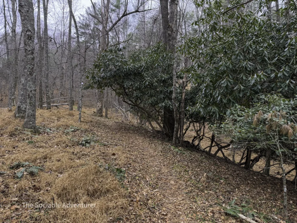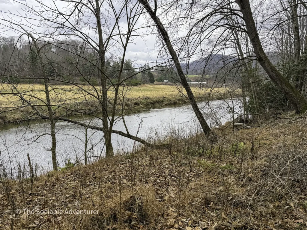 The Running Cedar Trail at Wagoner Access in New River State Park, North Carolina, is a peaceful and easy hike along the scenic New River. This one-mile trail, marked with white blazes, leads through green forests on a wide, gentle path that’s great for moderate hikers. The trail is probably named for the running cedar plant, a low evergreen you might see nearby, especially on the Fern Nature Trail. It’s a nice addition to other short trails in the area, like the red-blazed Fern Nature Trail and the small Bluebird Spur.