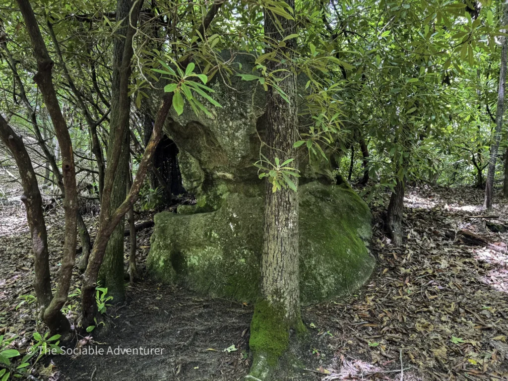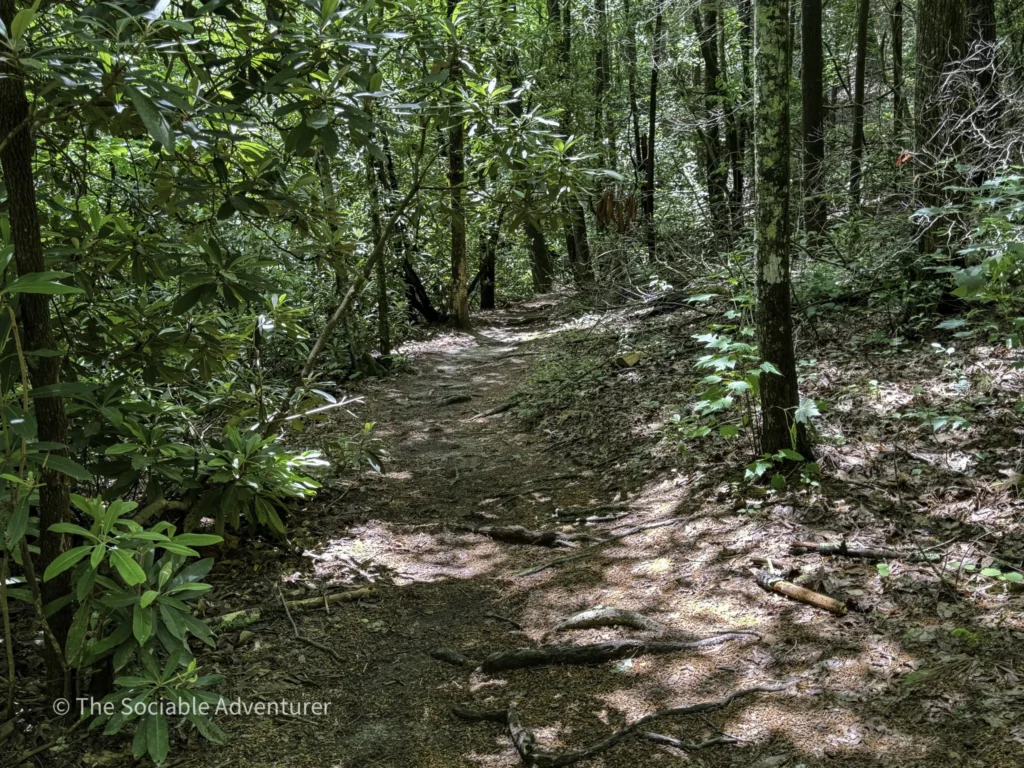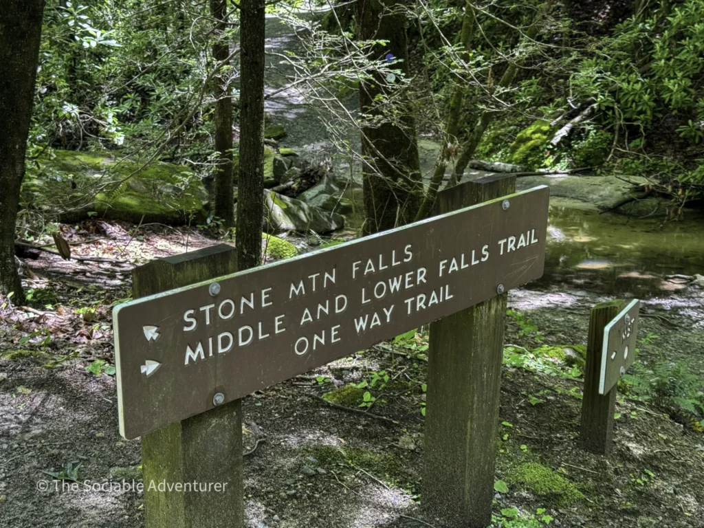 The Middle Falls / Lower Falls Trail at Stone Mountain State Park in North Carolina is a moderate hike that takes you through beautiful high-country scenery to two small waterfalls along Big Sandy Creek. The trail is marked with blue circles and is about a mile each way, but you can extend your hike to 3 or 4 miles by adding connector trails or hiking out-and-back. Along the way, you’ll walk on gentle slopes, forested paths, and some rocky spots, with clear signs to guide you.