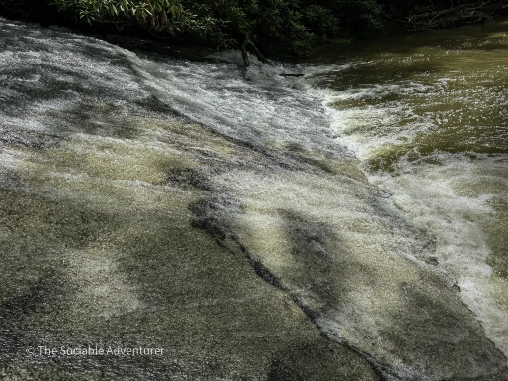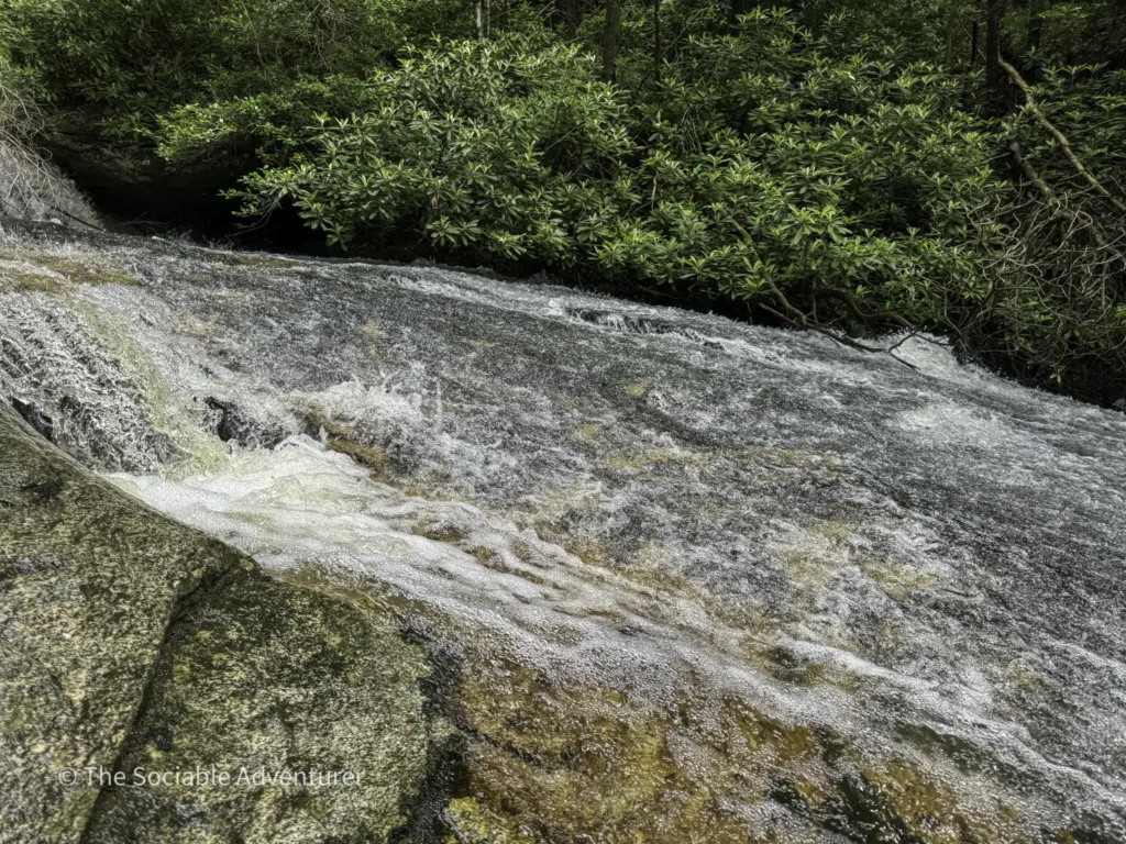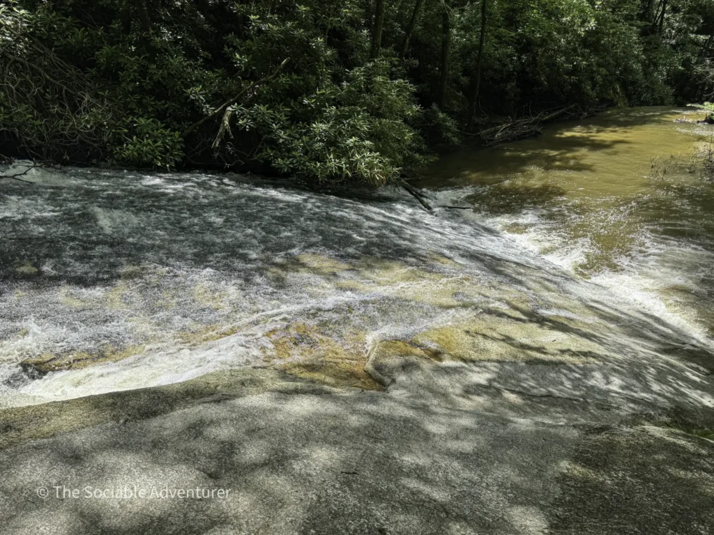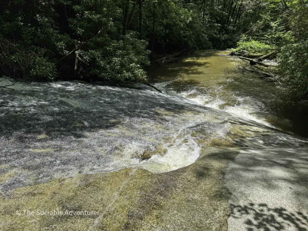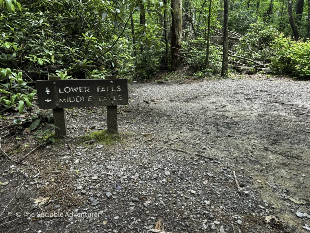 The first stop is Middle Falls, a 20-foot sliding rock waterfall with inviting pools, reachable by a short spur off the main trail, followed by the smaller Lower Falls downstream. We do want to note that to reach the Lower Falls, hikers will have to get their feet wet by crossing a fairly wide creek.
