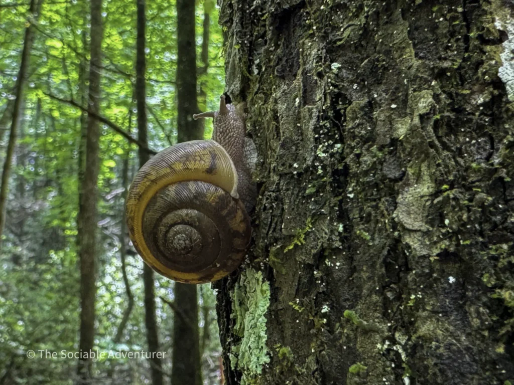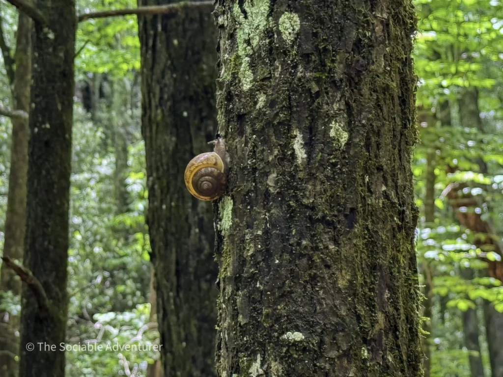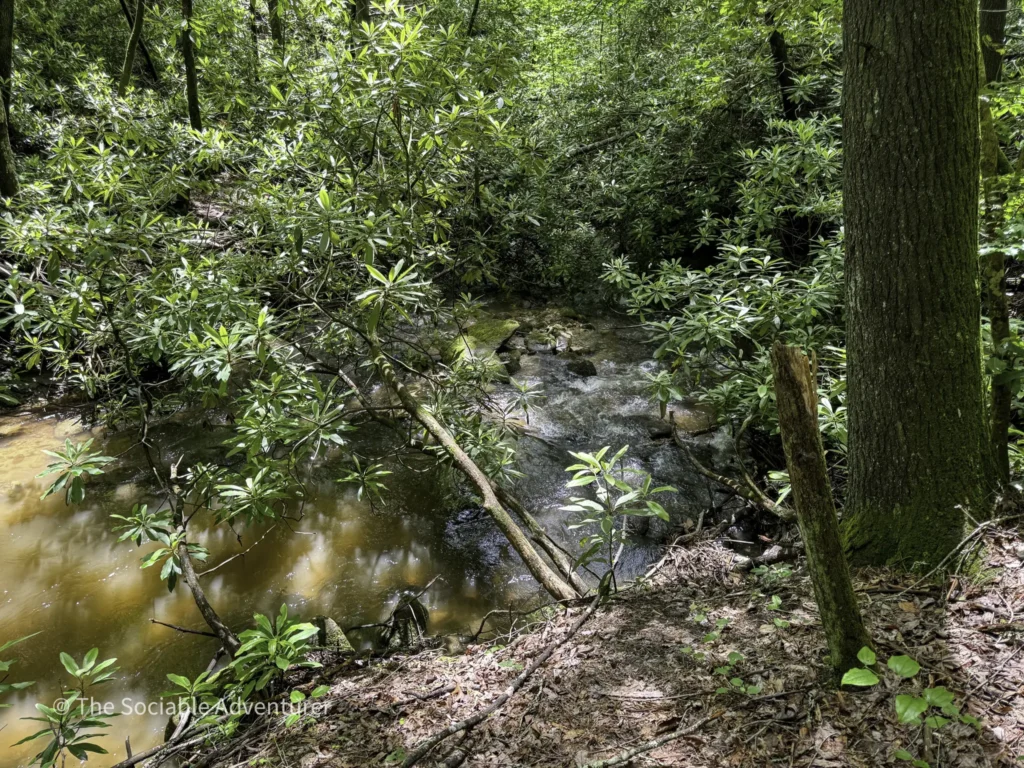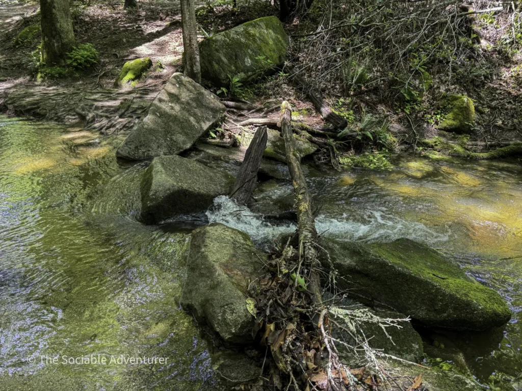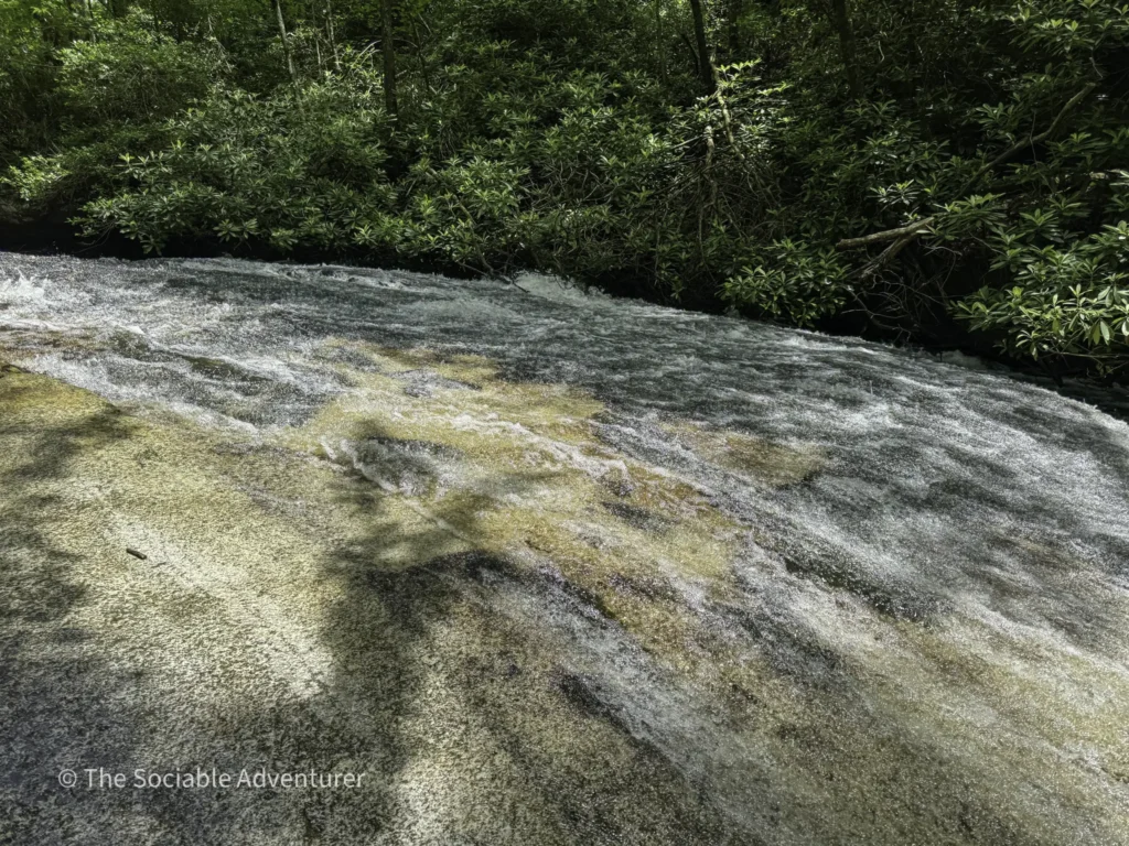 The first stop is Middle Falls, a 20-foot sliding rock waterfall with inviting pools, reachable by a short spur off the main trail, followed by the smaller Lower Falls downstream. We do want to note that to reach the Lower Falls, hikers will have to get their feet wet by crossing a fairly wide creek.