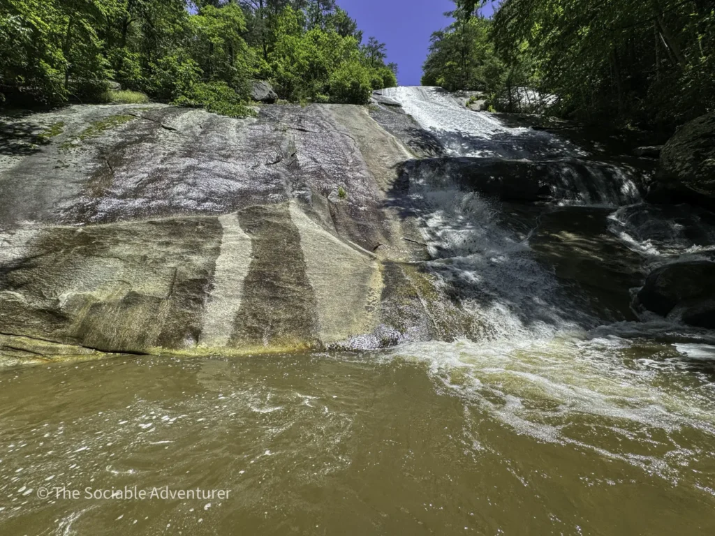 The hike offers a rewarding experience with lush forests, diverse wildlife, and views of the surrounding Blue Ridge Mountains. The best views of the Blue Ridge Mountains are at the top of the dome rather than at the falls. Water from Park’s Creek cascades over the rocky precipice, creating a serene and refreshing atmosphere. Stone Mountain Falls is a natural wonder and a peaceful retreat that showcases the beauty and tranquility of North Carolina’s landscapes. At the bottom of the falls, there is a pool where guests can dip their toes during warmer months.