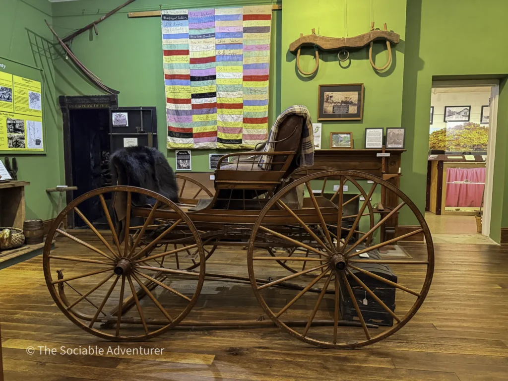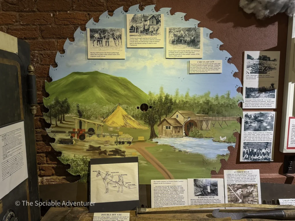 The Museum of Ashe County History is inside the restored 1904 courthouse in downtown Jefferson. It’s a friendly place where you can learn about the area’s mountain heritage. You’ll find interactive displays, historic artifacts, and bright hallways that make you feel like you’re stepping back in time. We especially liked the exhibits about the Virginia Creeper Railroad, local music and moonshining, the copper mine, and education in Ashe County, but honestly, every exhibit was impressive. Whether you love history or are just curious about Ashe County’s past, the museum is a great place to explore and connect with the community’s story.