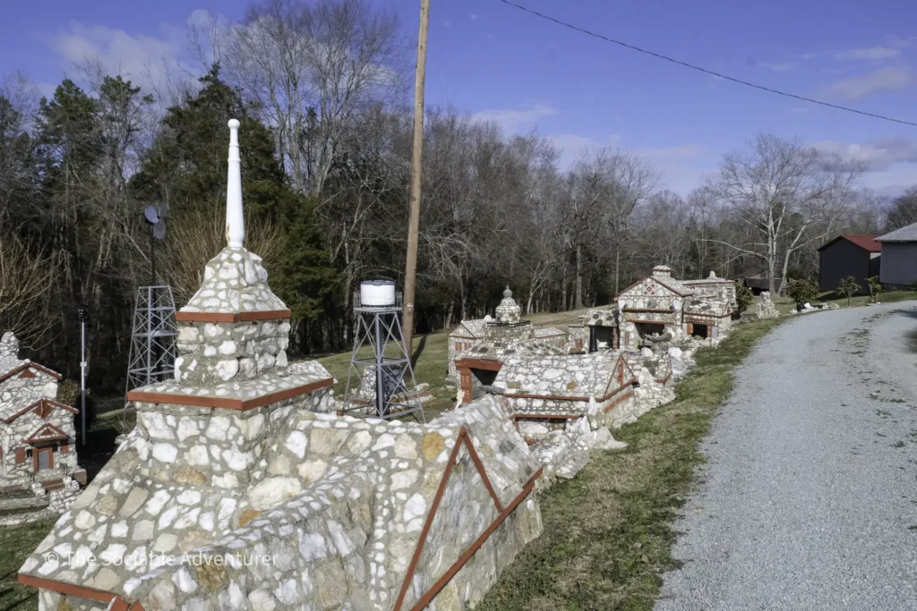 Tucked away along a quiet stretch of NC Highway 86 in Prospect Hill, North Carolina, lies a whimsical hidden gem: Shangri-La Stone Village. This enchanting miniature town, crafted entirely by hand by retired tobacco farmer Henry L. Warren starting in 1968, is a testament to one man’s creative vision and tireless dedication.