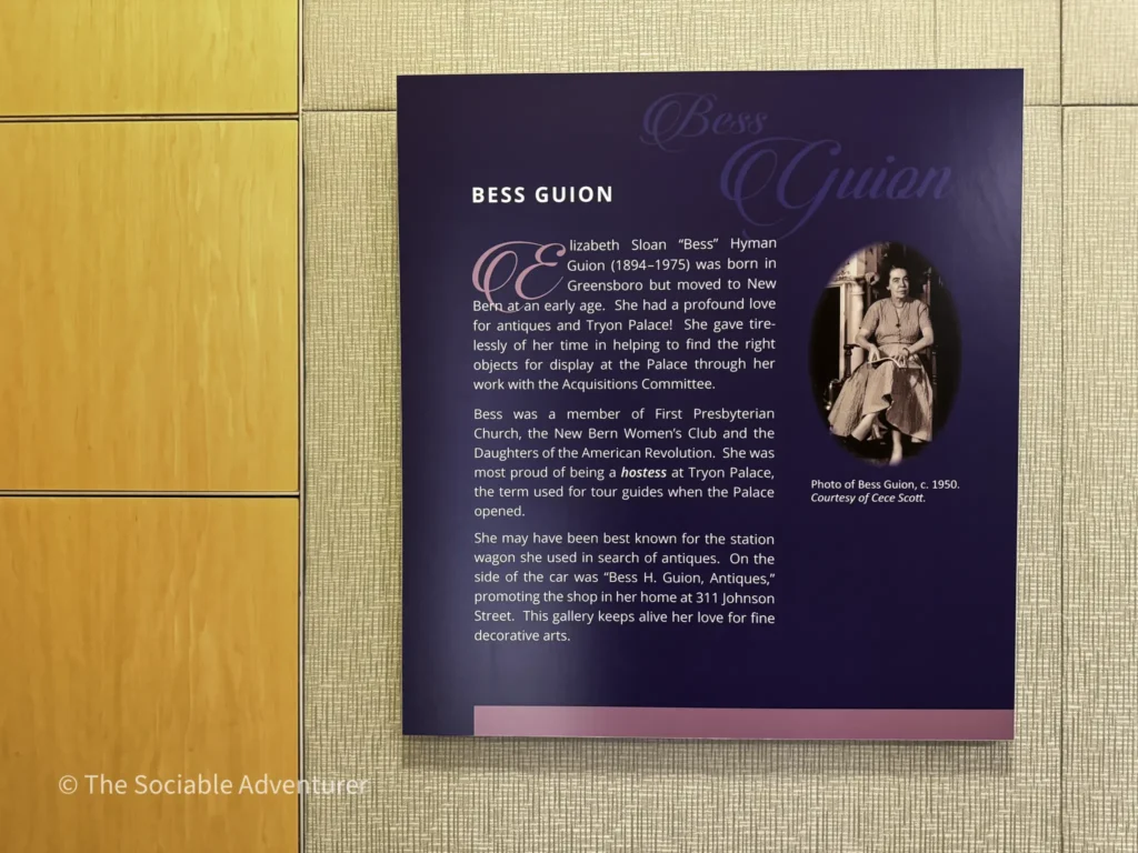 The Guion Gallery, located within the North Carolina History Center at Tryon Palace in New Bern, is a dedicated space showcasing the rich history and cultural heritage of North Carolina’s Central Coastal Region. Named in honor of Bess Guion and dedicated on April 5, 2019, during Tryon Palace’s 60th Anniversary Celebration, the gallery features the permanent “Treasures from the Attic” exhibit. This collection, spearheaded by Mrs. Maude Moore Latham, displays historically significant decorative arts pieces that were reinterpreted to reflect the lifestyle of Governor Tryon in 1770. Admission to the Guion Gallery is free, offering visitors access to artifacts, interactive displays, and a glimpse into the region’s past, complemented by rotating exhibits and engaging historical activities.