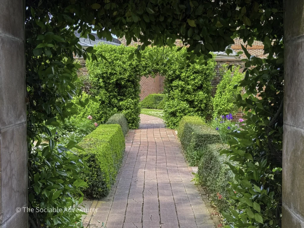 The Kellenberger Garden at Tryon Palace, located in New Bern, North Carolina, is a delightful walled “privy garden” designed to evoke the colonial era. It honors May Gordon Latham Kellenberger and her husband, John, who were key benefactors in the restoration of the Palace. Designed by landscape architect Morley Jeffers Williams in the 1950s, the garden exemplifies the Colonial Revival style, featuring a mix of heirloom and modern plants like marigolds and celosia, which were popular in the 18th century. The plants are arranged to create a vibrant, stained-glass effect of colors that can be appreciated from both ground level and the interior of the Palace.