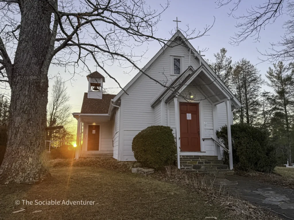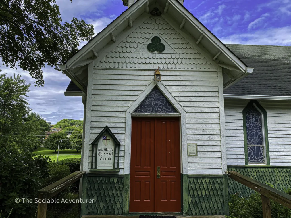 St. Mary’s Episcopal Church in West Jefferson, North Carolina, is a historic white-frame chapel built in 1905. Its Carpenter Gothic style stands out with white clapboard, green trim, and a red front door. Although it seats fewer than 100 people, the church is one of Ashe County’s most cherished landmarks and draws many visitors. The following frescoes are in the church.